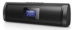 Overall, it has a nice hefty, quality feel to it, and it doesn't seem light or cheap. The two front-firing 40mm (1.57") speakers are ported in the rear of the unit, so if you put it near a wall or place a solid object behind it, you will get a bit fuller sound. The speaker grilles are a metal mesh, and the cabinet is a high-impact plastic in gloss black. The ends/sides of the unit are a different type of plastic, with a matte finish. The bottom of the unit has a wide rubber strip along the entire length, so it won't slide off a table when playing. The blue backlit display shows all data on the song playing, and also scrolls the title and artist during playback. However, the scroll speed is very slow and most likely the backlight will turn off before you are able to read the entire title. You can change the backlight timer in system settings, up to 30 seconds - which may still not be enough time if the song title is long. Supposedly, the unit will also display lyrics (assuming you put them into the MP3 tag) but I can't see how this could work with the short backlight time. I haven't tested this feature to verify this, however. The display window is misleading, observing it before you power the unit on. The window itself is a generous 6cm (2.5") but the actual display size is much, much smaller - about 2.5cm (1"). It can be a bit hard to read - especially for anyone like me, with less than perfect vision. If I had to recommend one improvement to the manufacturer, it would be to increase the screen size to the full 2.5" that is available in the display window. Another big improvement would be to use an LCD that doesn't require a backlight, so it could stay on all the time while playing. Having a built-in clock in this unit is almost useless, because of the backlight issue. The functionality could be increased greatly by just changing the display.